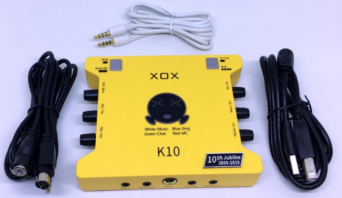 XOX K10 là card âm thanh đa năng của hãng XOX, cung cấp cho bạn hầu hết các chức năng và hiệu ứng cần thiết để hiệu chỉnh âm thanh trong quá trình thu âm, nghe nhạc hay livestream. Sound card sẽ giúp bạn xử lý lại âm thanh trước khi được đưa vào phần mềm thu âm, phát ra loa hay headphone. Bạn có thể dễ dàng điều chỉnh về âm lượng, tiếng vang ECHO, Bass, Treble,… theo ý mình bằng cách vặn các nút tùy chỉnh trên thân sound card trong quá trình thu âm, hát live.